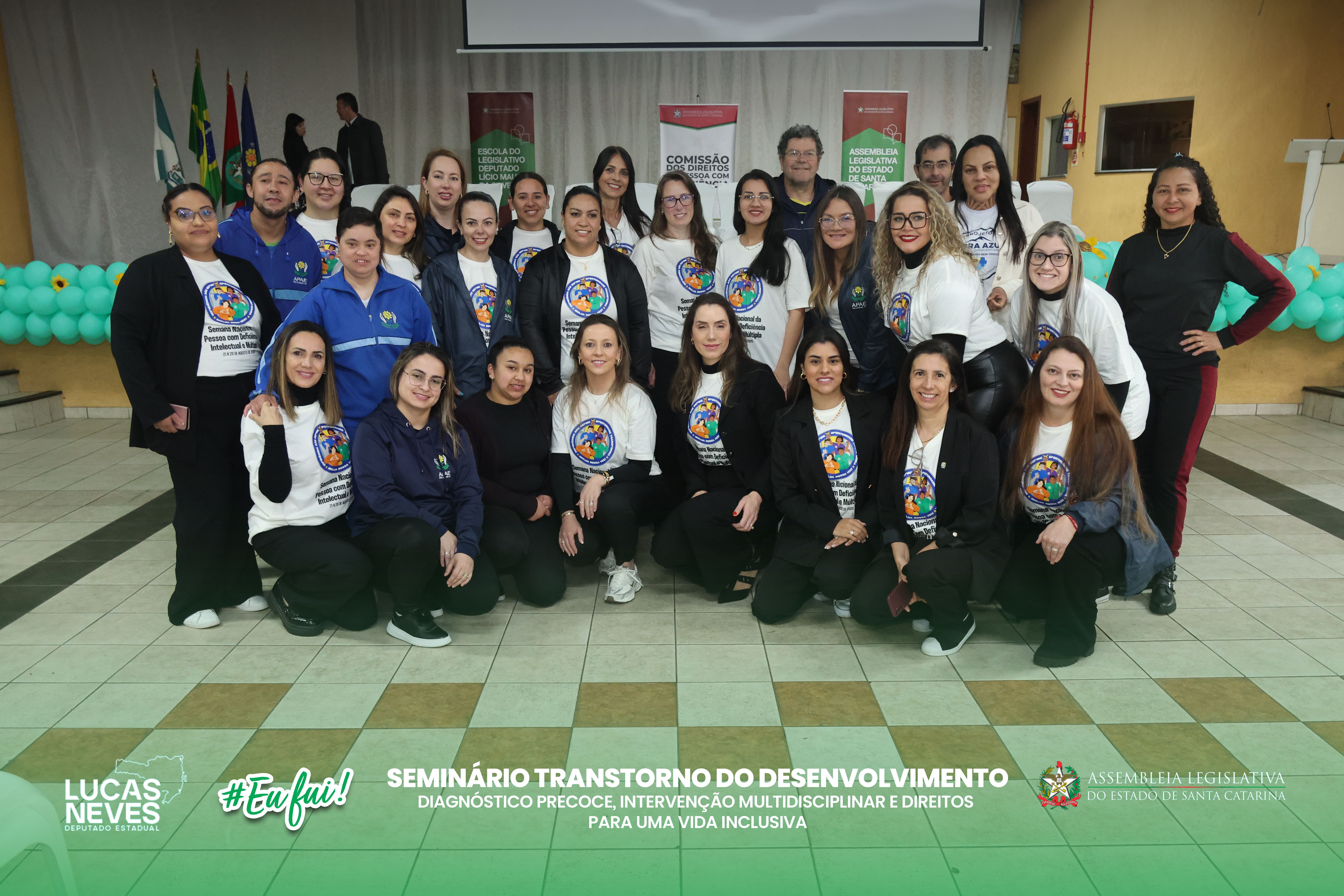 O evento contou com a presença do presidente da FEAPAES-SC, Osmar Minatto, e da procuradora jurídica da Federação, Isís Regina de Paula, que prestigiaram a programação e reforçaram a importância de iniciativas que ampliam a discussão sobre os direitos da pessoa com deficiência e sobre estratégias de cuidado e intervenção.