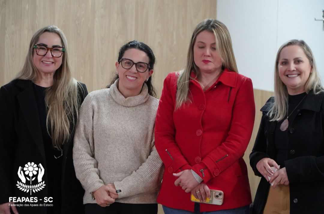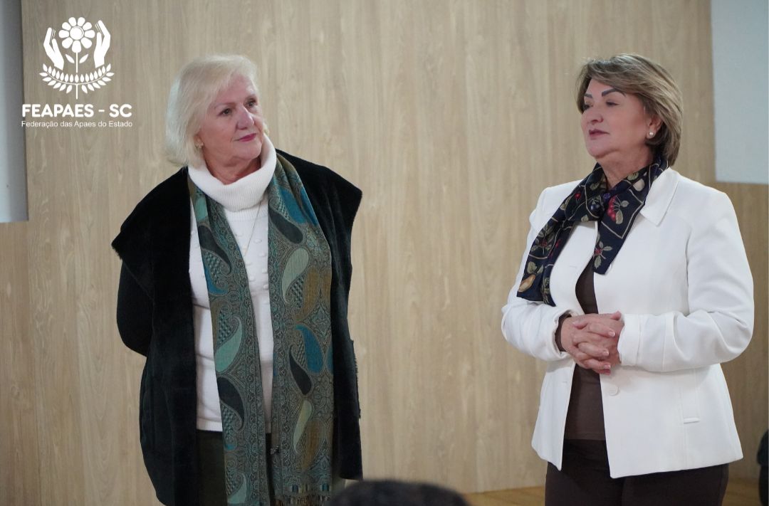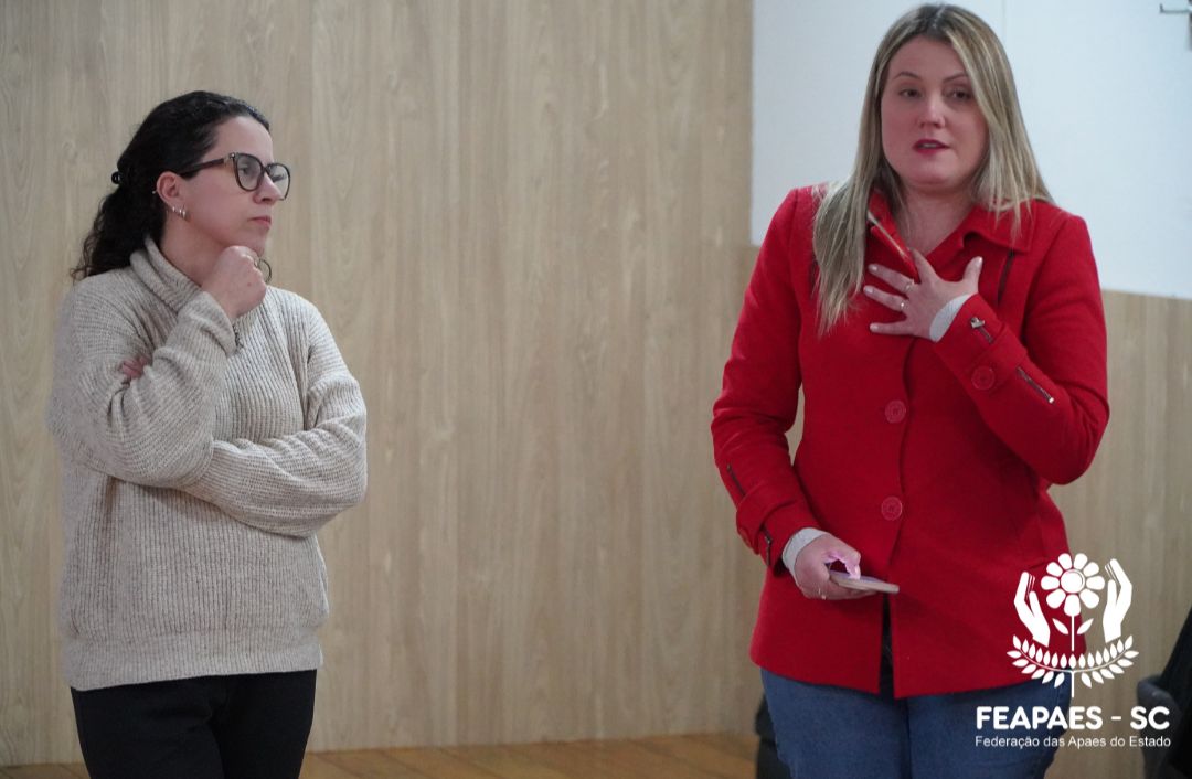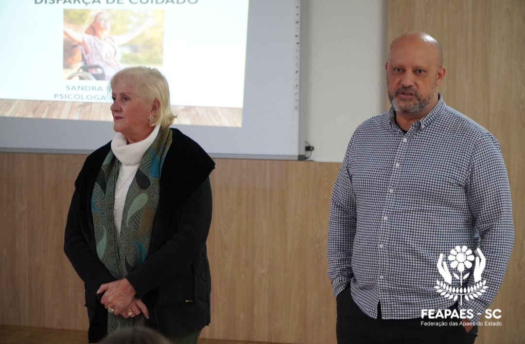 A capacitação contou ainda com a presença de importantes lideranças: a vice-presidente da FEAPAES-SC, Janice Scraniak, a superintendente Maria Nilza Eckel e o diretor da APAE de São José e coordenador estadual de saúde, Fabiano Jussaro de Jesus.
